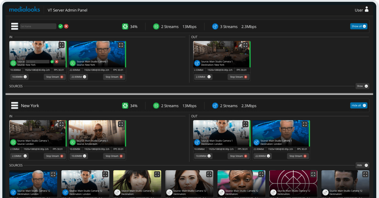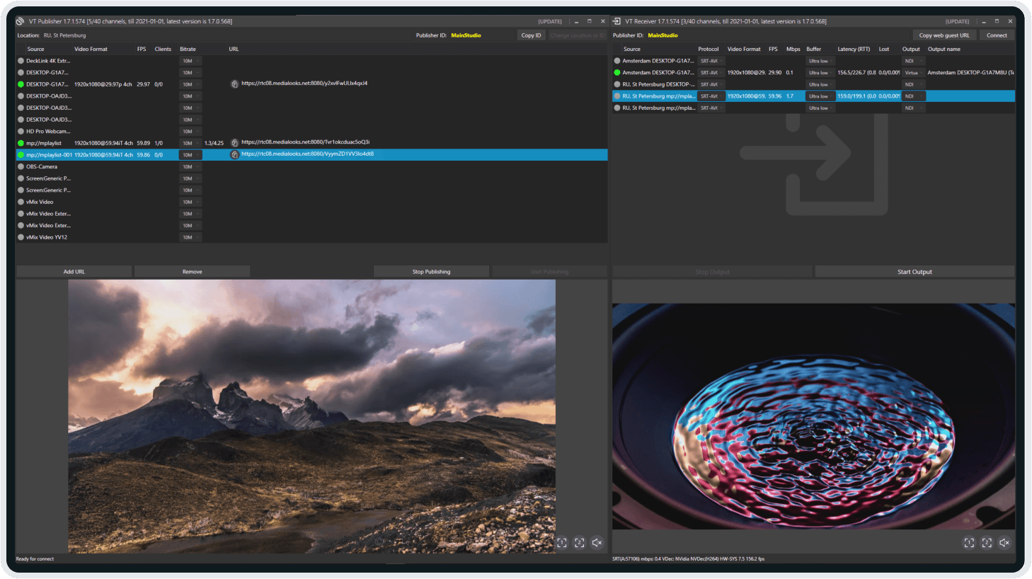 低延迟视频流解决方案,可通过公共 Internet 传输 SDI 和 NDI 的实时视频源,最高实时延迟。